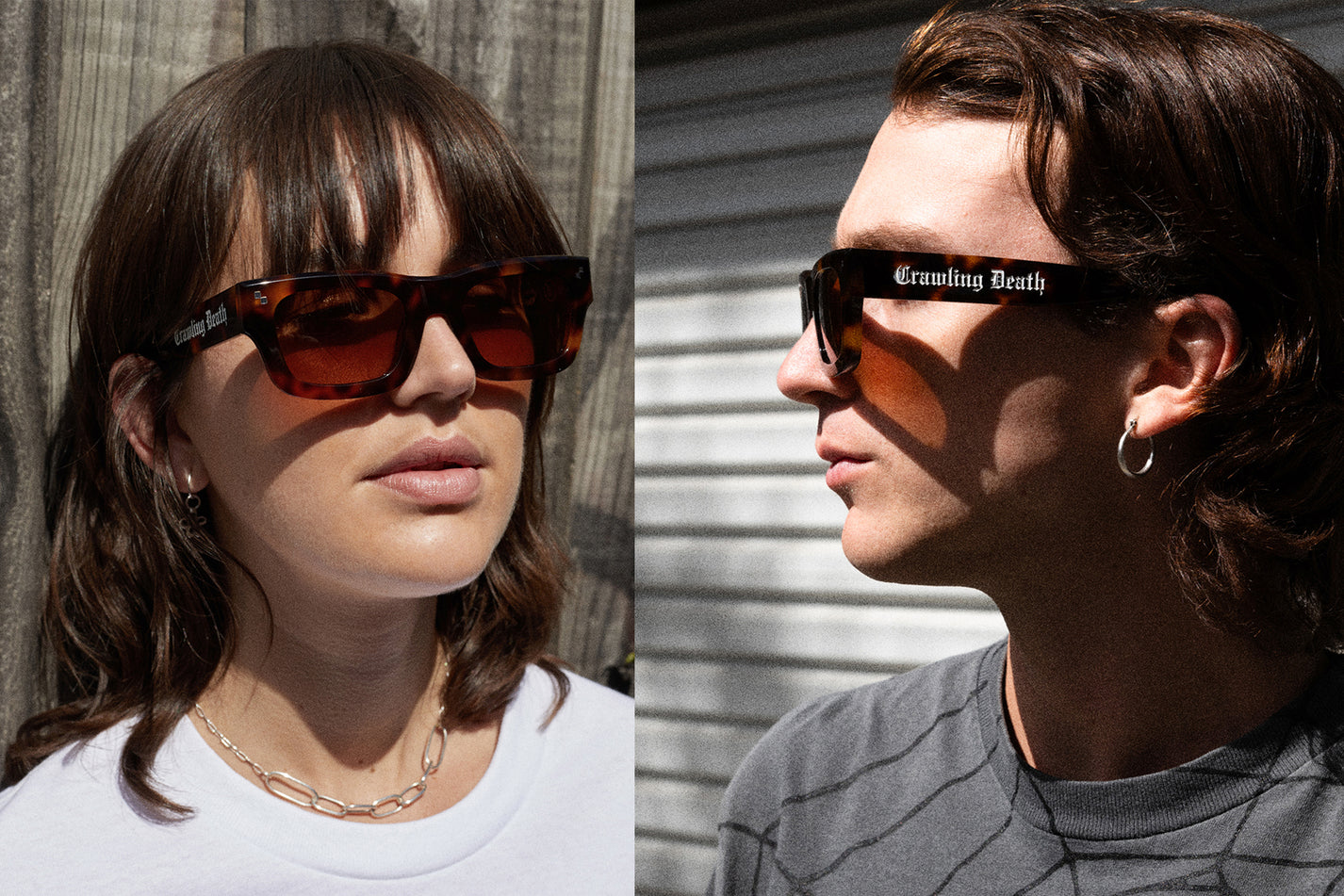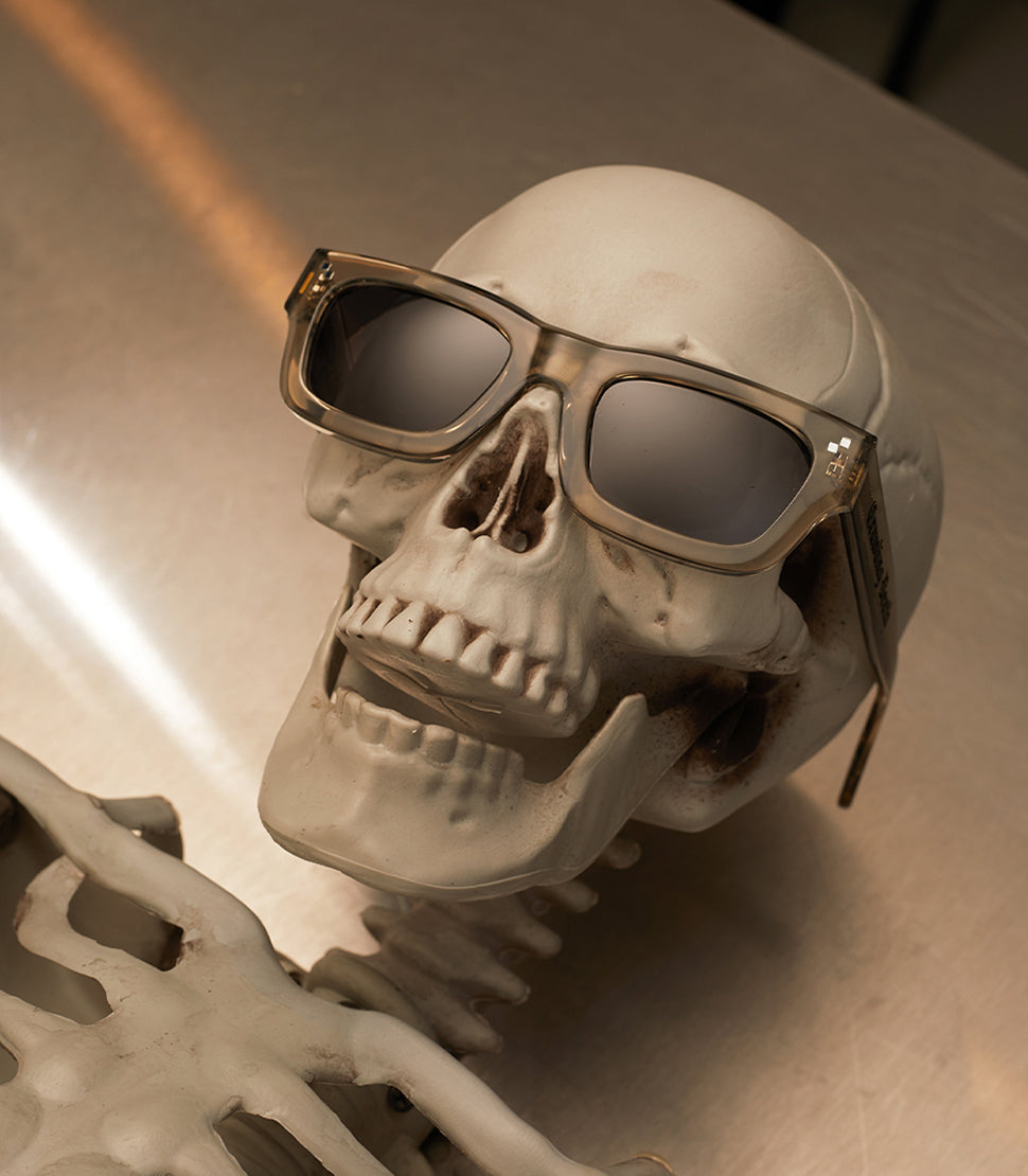 Introducing Our newest style Designed in collaboration with Crawling Death. A distinct and timeless frame, with engraved and ink filled branding on each temple arm. These are a very unique and limited piece of eyewear available in two colour-ways, Black / Grey and Charcoal / Red.
