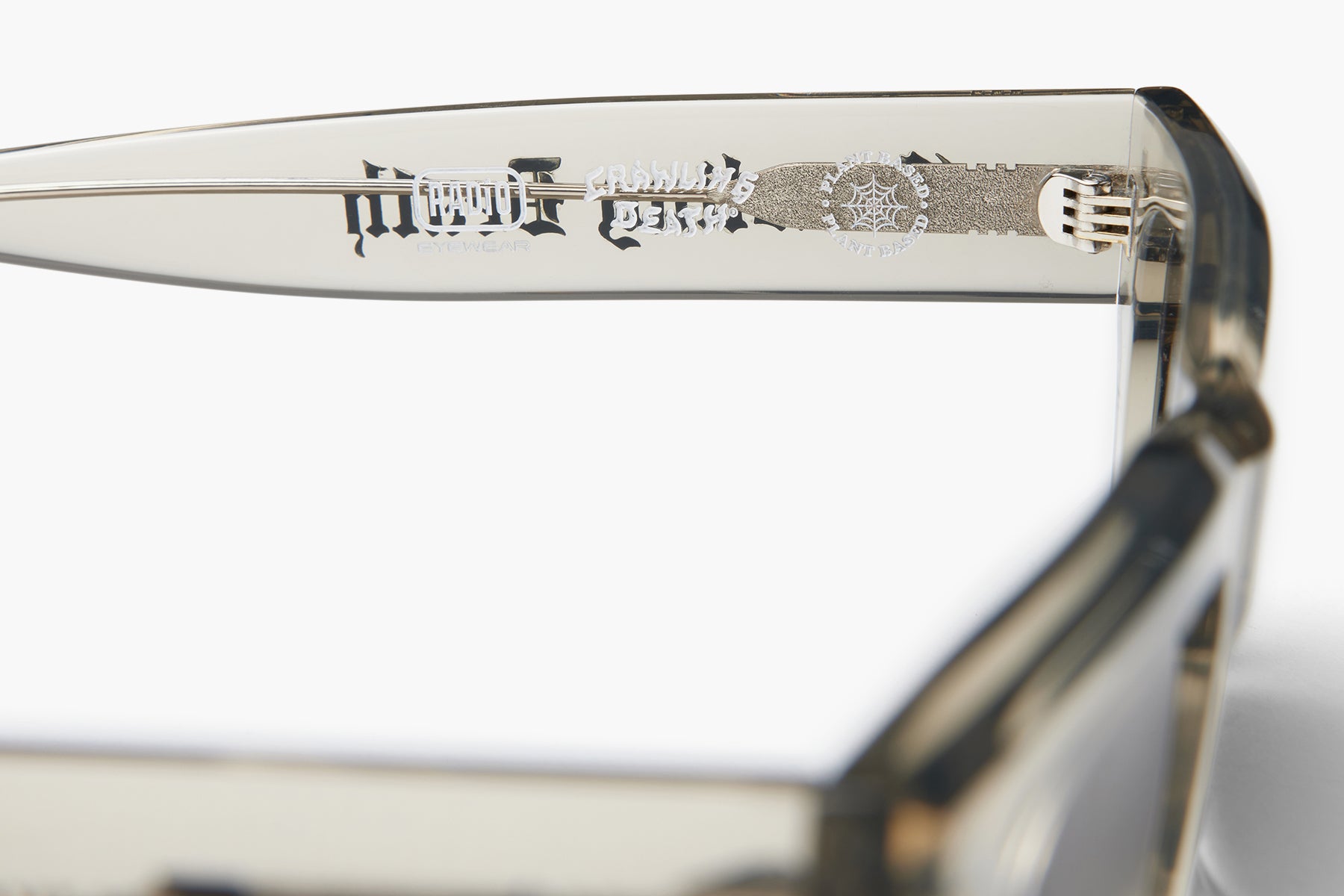 This style is such a distinct and timeless frame, with engraved and ink filled branding on each temple arm. This frame will suit most to all face shapes and sizes.