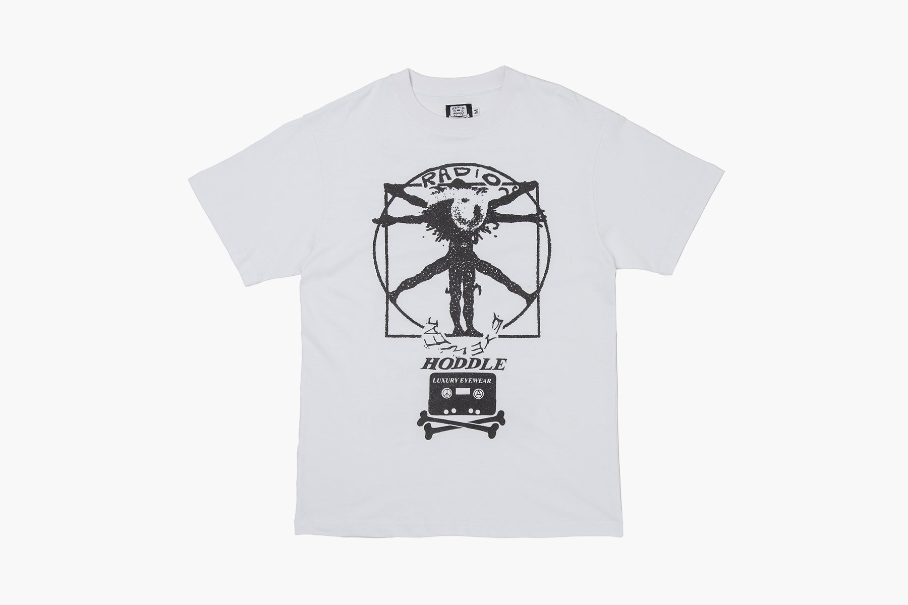 Along with the glasses Radio and Hoddle present a tee shirt graphic in 3 colourways with front and back print, as well as a trucker hat with puff printed art