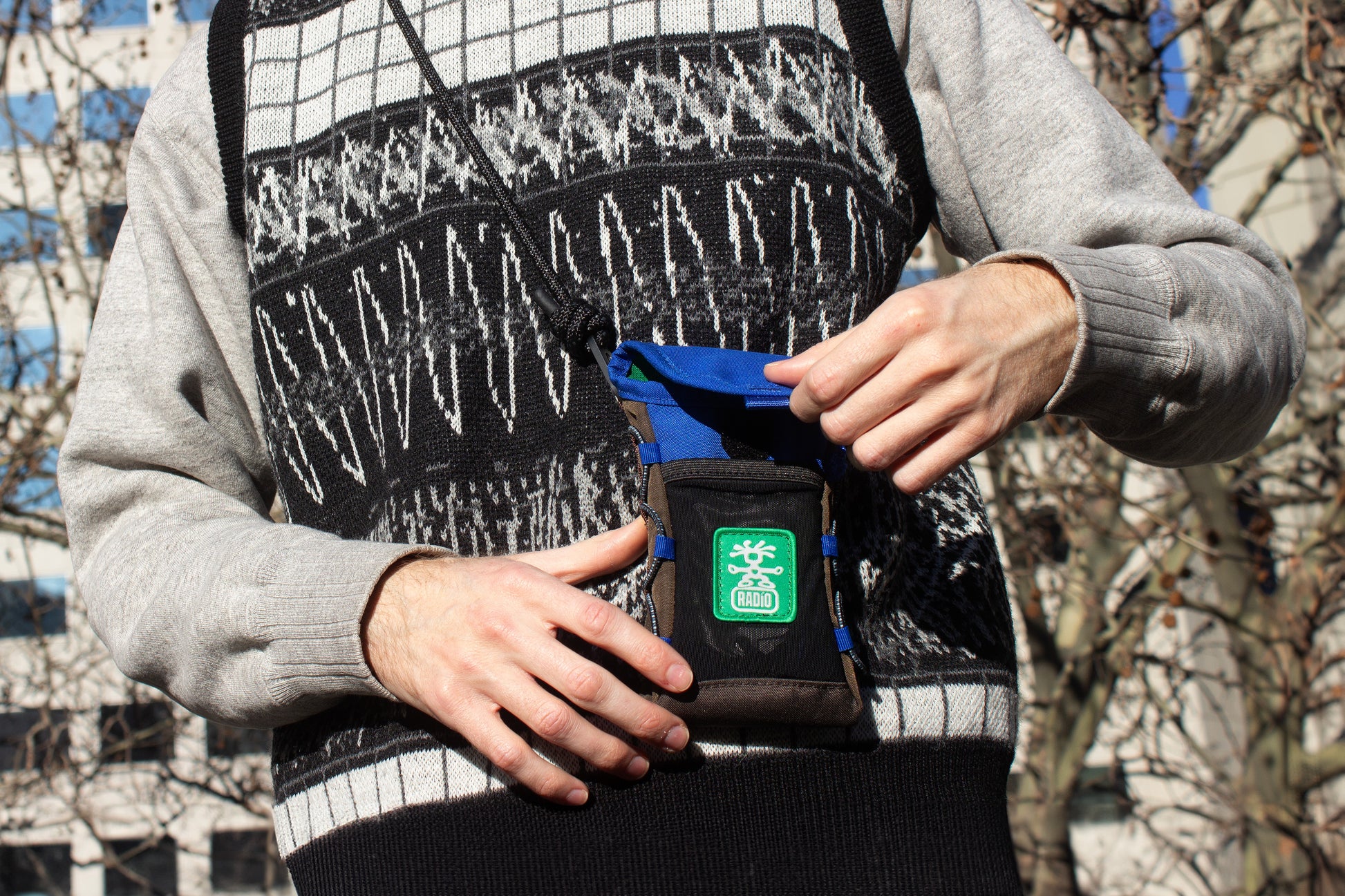 A lightweight crossbody bag designed and made in collaboration with Radio Eyewear.